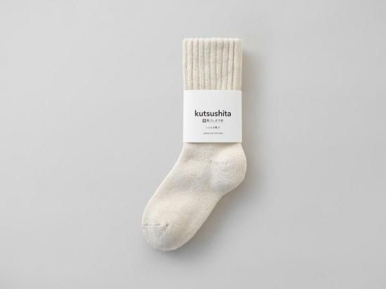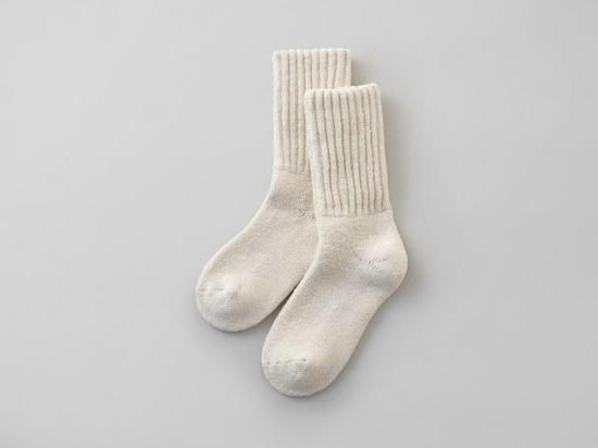 このガラ紡木綿の厚手くつしたは、裏側が肌触りバツグンのふわふわパイル地。