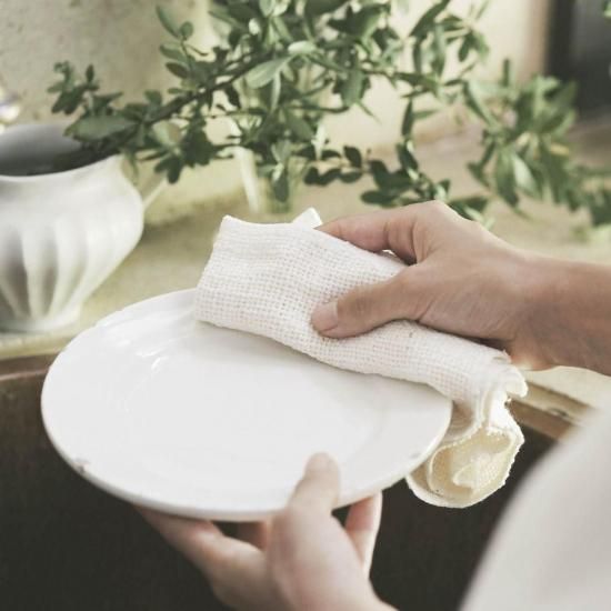 ガラ紡でできた糸は、空気を含んでふんわりと柔らかく、自然な油分と風合いが残ります。洗うたびに風合いが増し、肌や手になじんでいくのも魅力の一つ。使いはじめは80%、残りの20%は使う中で完成していく、そんな“育つ布”です。