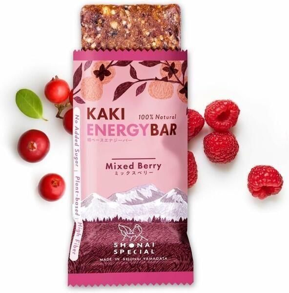 食物繊維が豊富な庄内柿をベースに、有機発芽玄米粉やナッツ、オーツなど植物由来の原材料を組み合わせ、様々な栄養素をバランス良く摂取できるナチュラルエナジーバー。